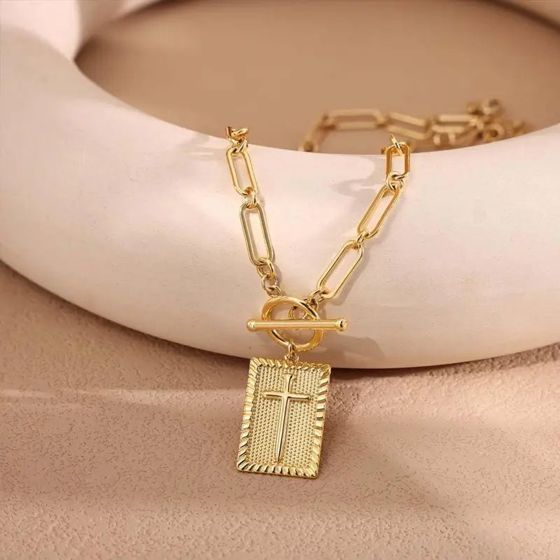 ✝️ Cross Pendant Paperclip Chain Necklace, 14K Gold & Silver Plated, Unisex, Waterproof and Sweat-Resistant, Fade-Proof