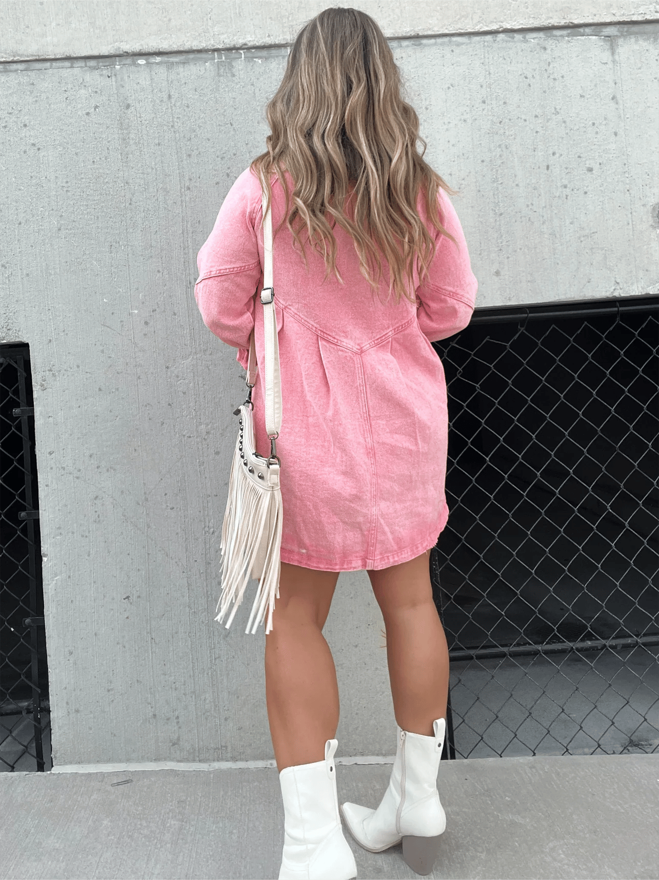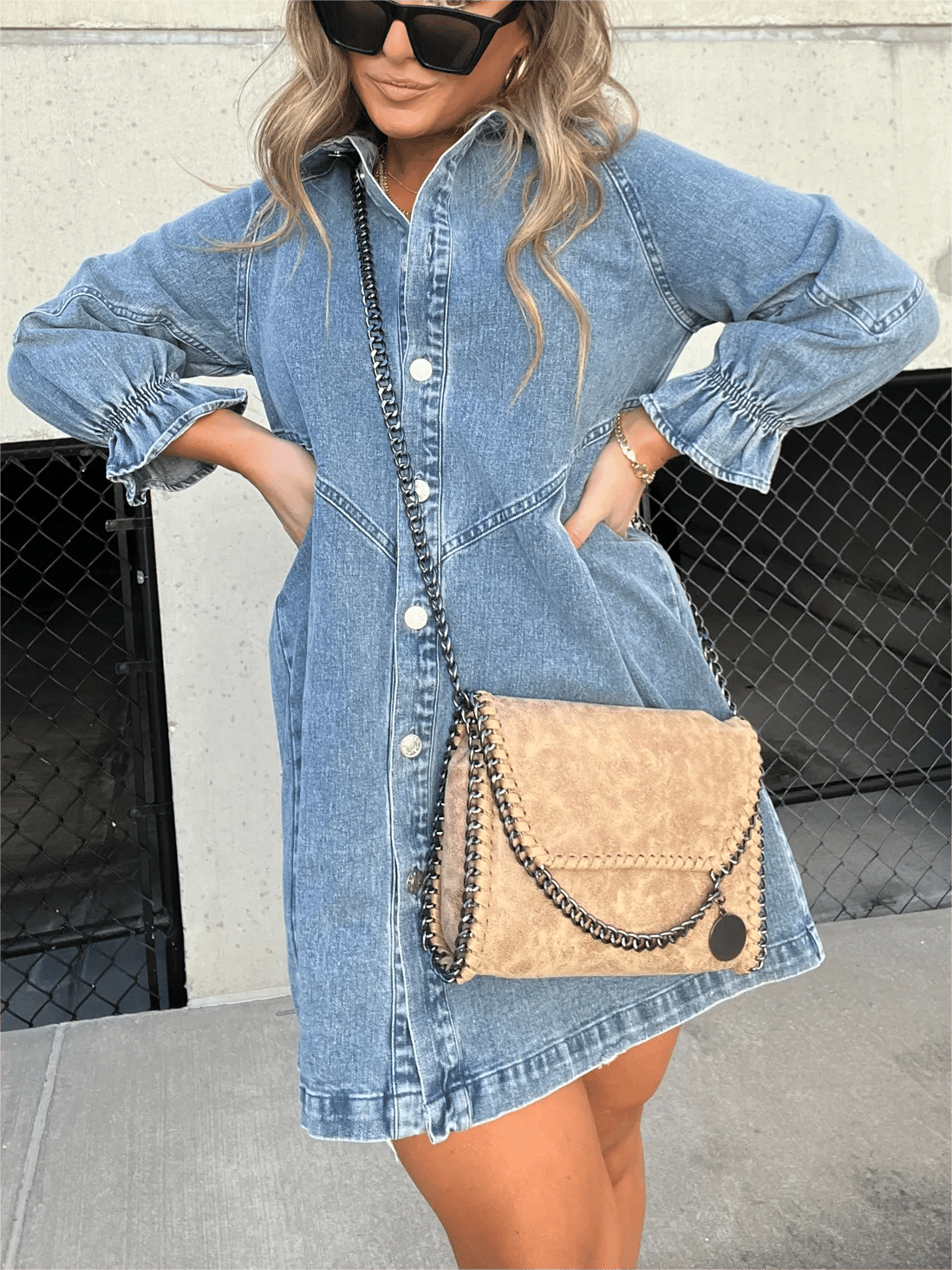 Stay on trend this season in our new Washed Denim Puff Sleeve Dress. We especially love the plain fabric and think this piece will be a new favorite in your closet!
