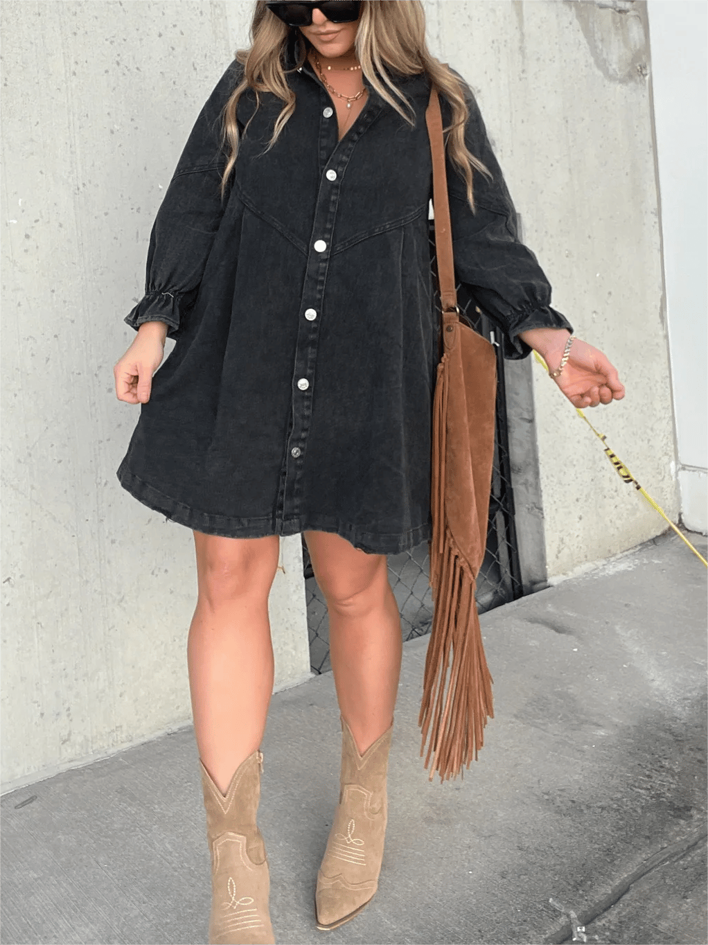 🔥FREE SHIPPING🔥Washed Denim Puff Sleeve Dress
