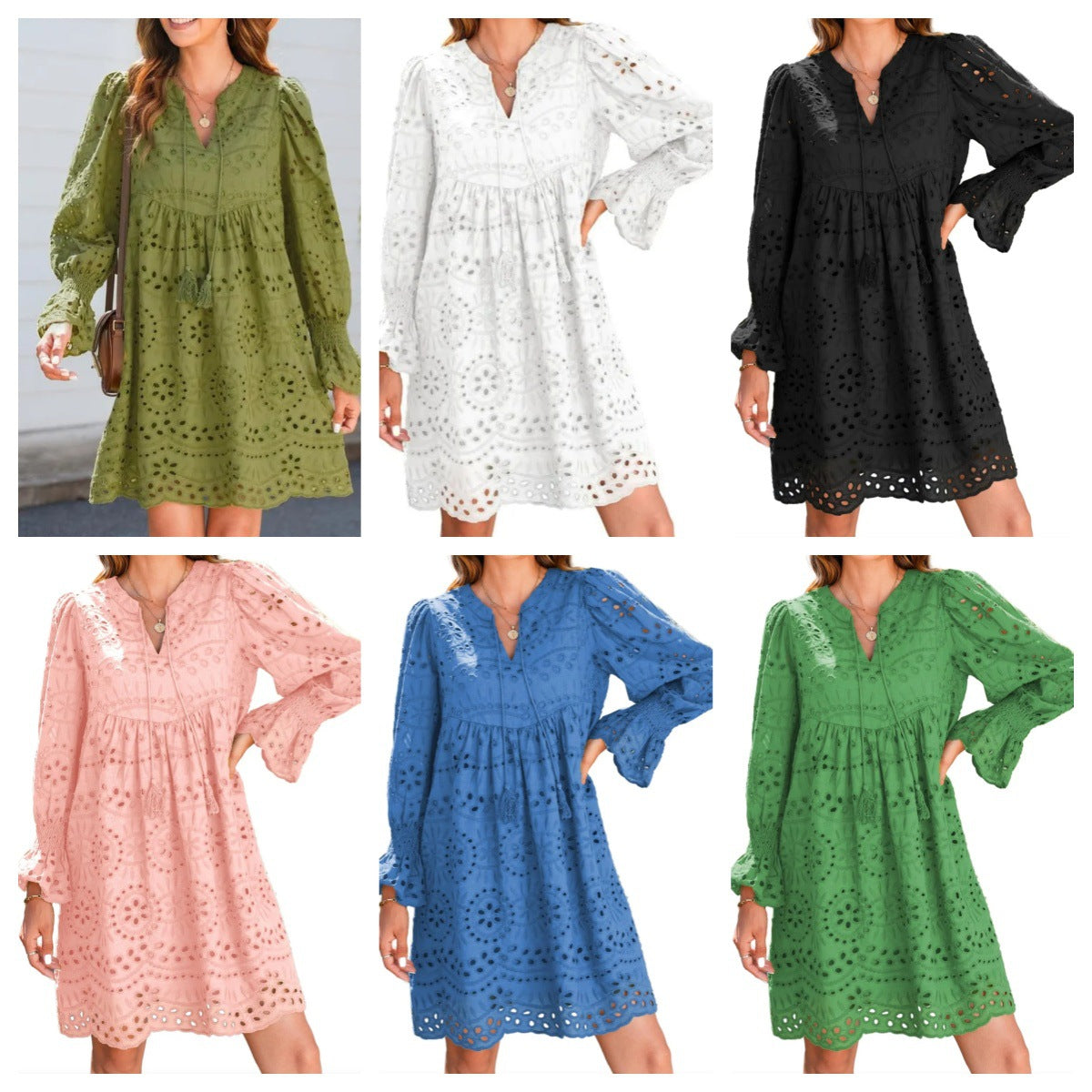 🥰 Shine bright in our enchanting tassel V-neck dress! ✨Elegant ruffles & hollow-out details create a stunning look. 👗