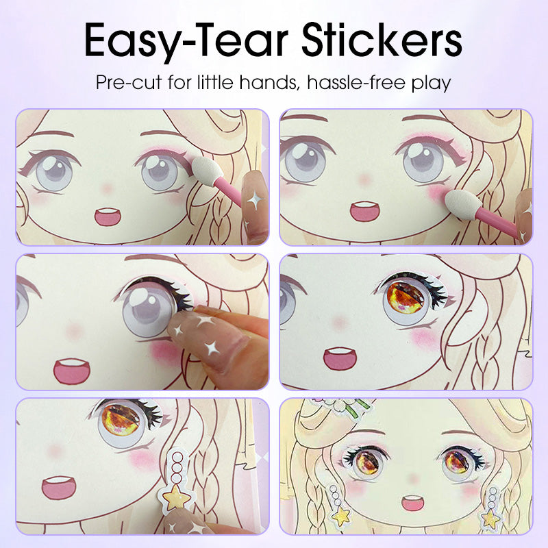 ENDLESS CREATIVE PLAY OPTIONS: Featuring multiple play modes including coloring, sticker decoration, and face styling, this set encourages open-ended creativity. Kids mix and match elements freely, designing unique looks and stories, fostering imagination, artistic expression, and independent thinking.