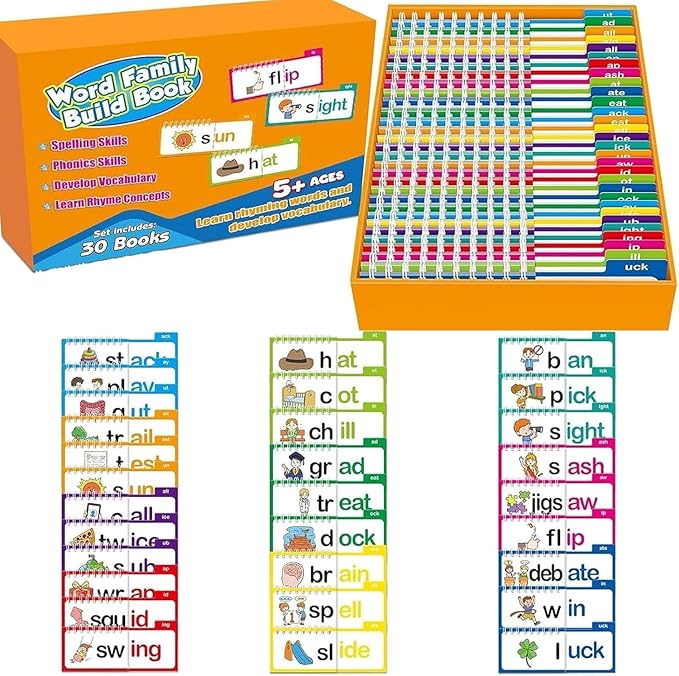 The Perfect Gift ! ! ! Explore Essential Word Families - This set of 30 word family flip books introduces young learners to foundational word families. Each word family includes a corresponding word and vivid image, making it easier for children to recognize patterns and build reading skills with confidence.