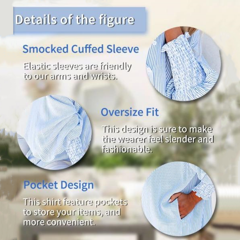 🌞Summer Sale🔥Women's Striped Shirt with Elastic Sleeves
