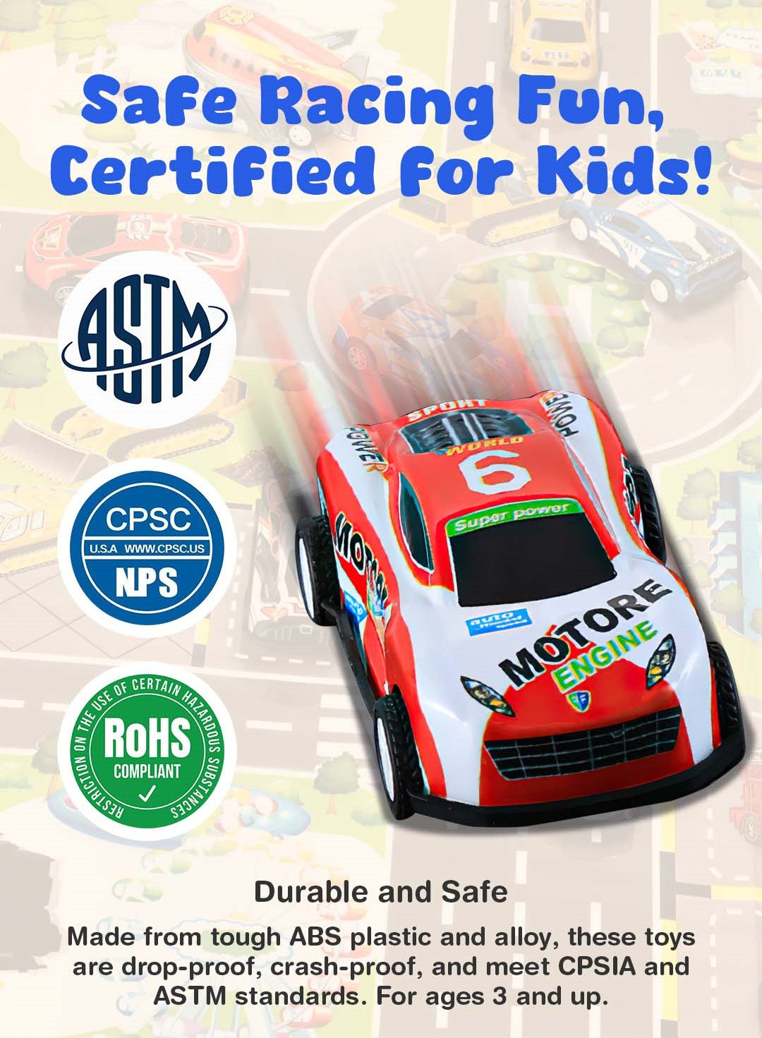 No battery required. Drag the stunt car for a certain distance and then send it away and it will automatically move forward.