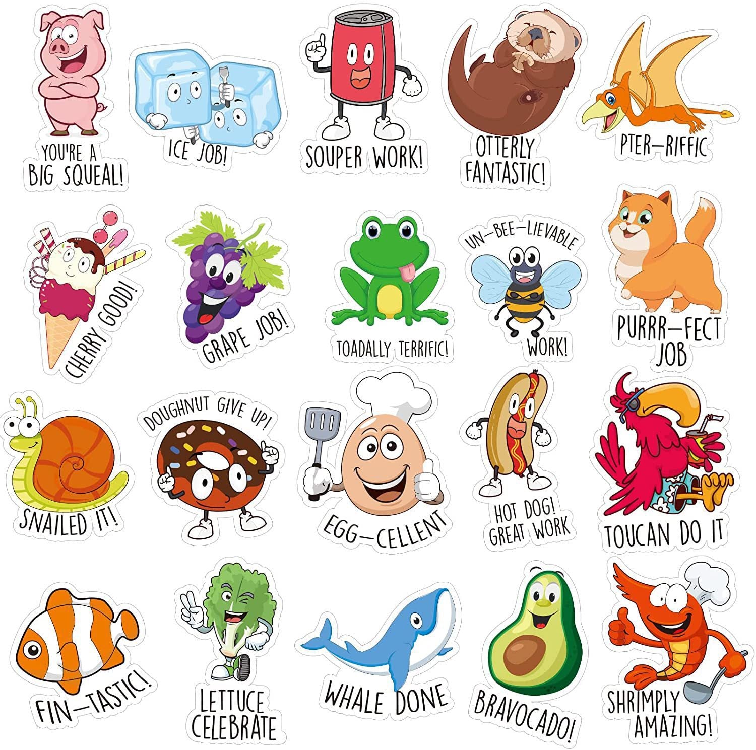 Cute & Funny Pun Stickers: Our pun stickers are carefully designed with vivid food and animal patterns, funny positive puns, cute shapes, and bright colors, easily attracting children's attention and keeping them interested in the classroom. Classroom Teachers must-have stickers for students!