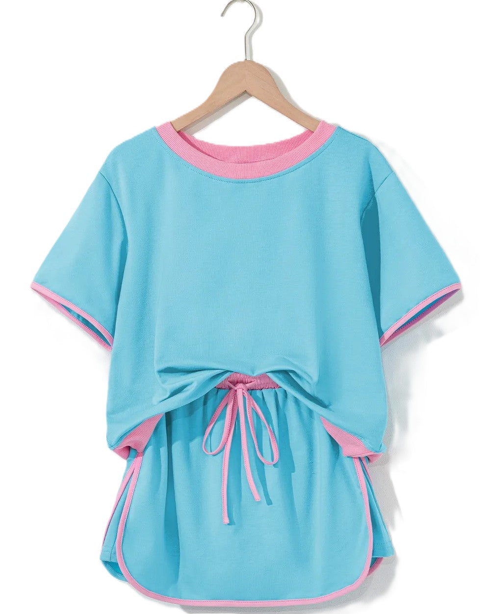 This versatile outfit features a stylish design with a round neck and a drawstring waist skort, offering a comfortable and flattering fit. Crafted in a vibrant summer color and made from soft, stretchy fabric, this set is ideal for any occasion – whether you're on vacation or simply lounging around. Elevate your summer wardrobe with this must-have ensemble!