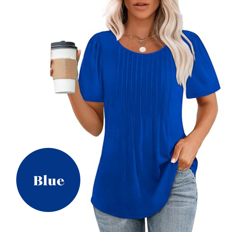🍀Summer Sale 50% OFF👚Women's Round Neck Short Sleeve Pleated T-Shirt