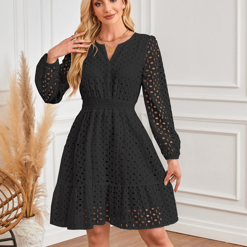 💕Summer Hot Sale 50% Off & Freeshipping💕Women's V-Neck Long Sleeve Hollow Out Dress