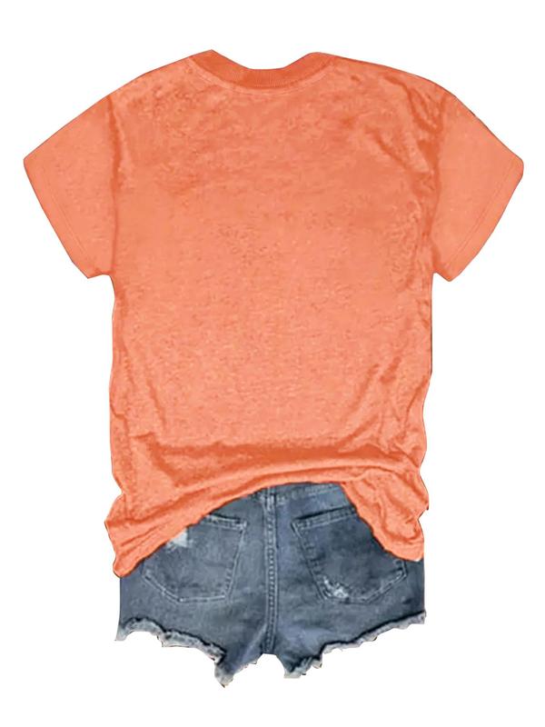 Vintage Letter Print Short Sleeve Tee – Retro Casual T-Shirt for Women